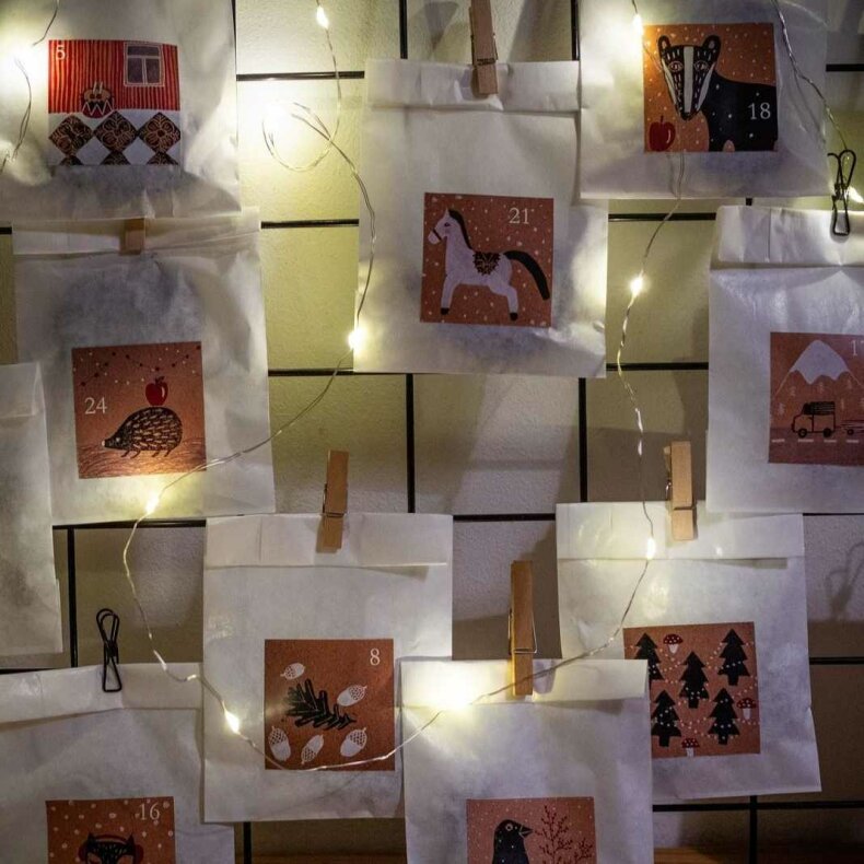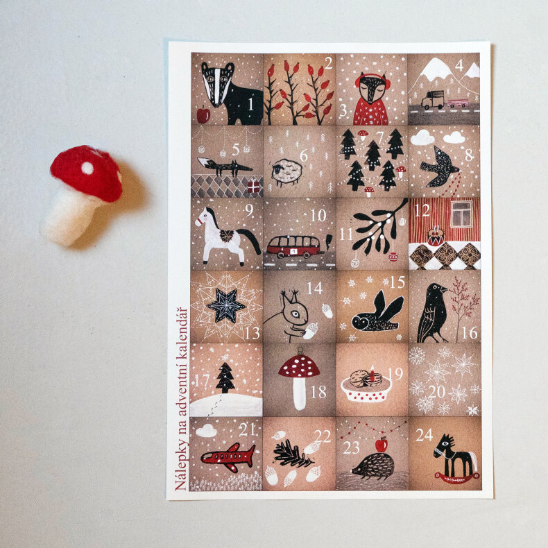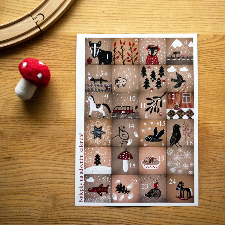 Adventní samolepky na kalendář podle vašeho gusta. Lepící arch velikosti A4 si samo rozstříháte na čtverečky a je to.