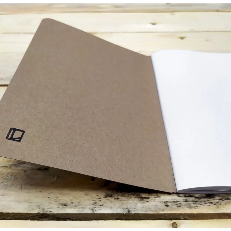 Ručně vyrobený sešit formátu A5 (148 x 210 mm), uvnitř 30 nelinkovaných listů recyklovaného papíru.