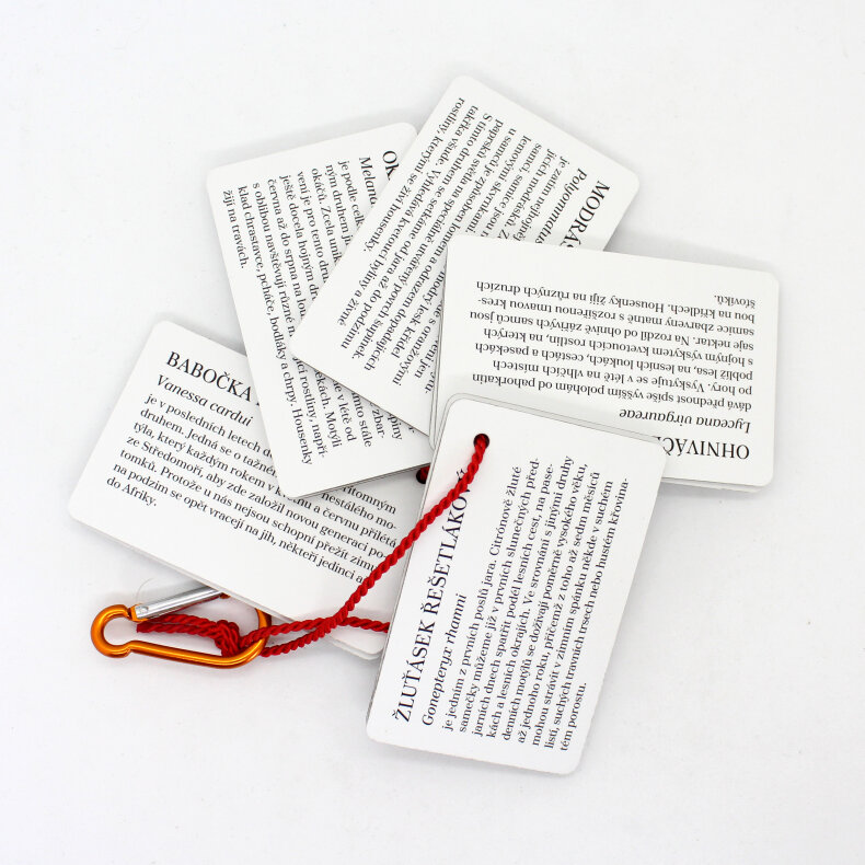 poznávací kartičky, 56x88 mm, ofsetový tisk, karton, laminace, sada obsahuje 10 kariček
