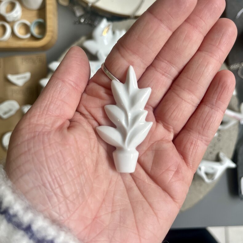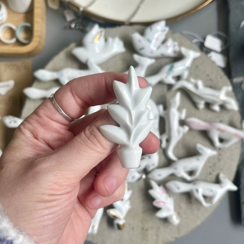 porcelánová brož pro milovníky pokojovek