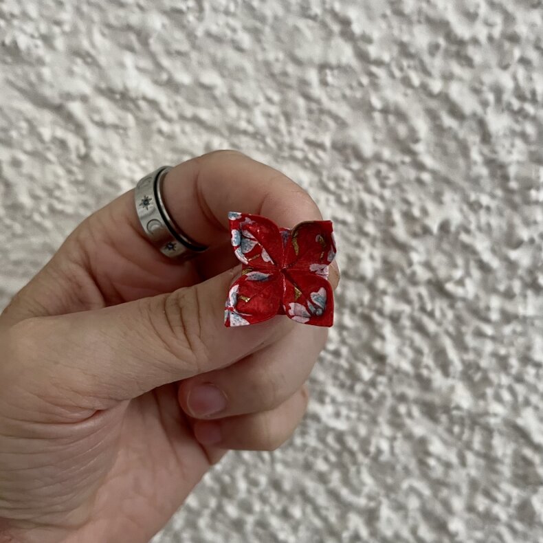 Brož je ručně složená z kvalitního dovozového washi papíru, který byl vyroben v samotné kolébce origami v Japonsku.