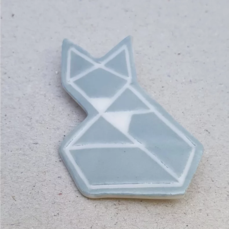 Ručně modelovaná brož z porcelánu ve tvaru ptáčka, o velikosti cca 4,5 cm.