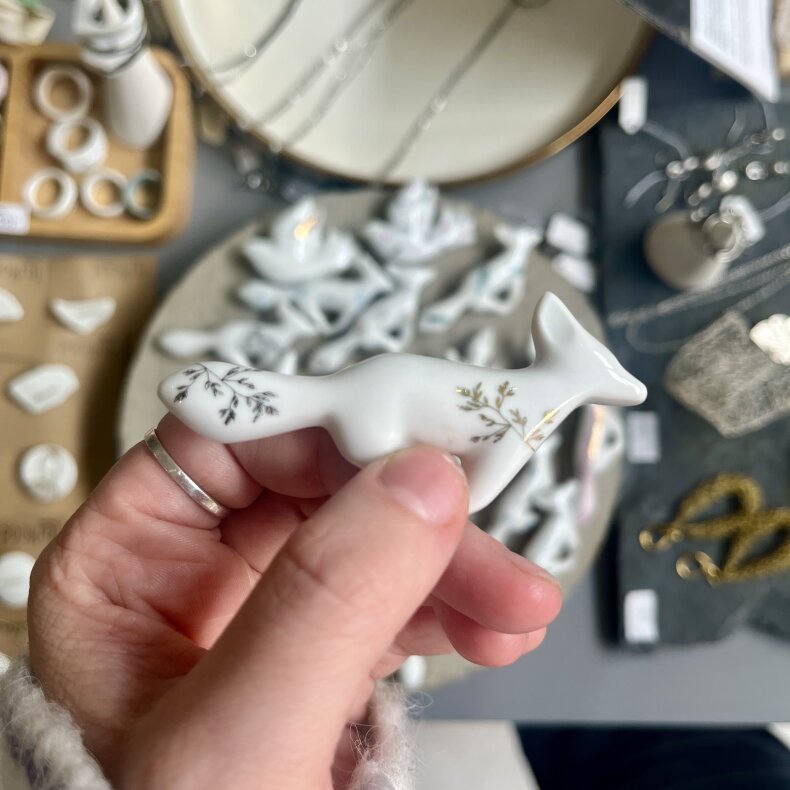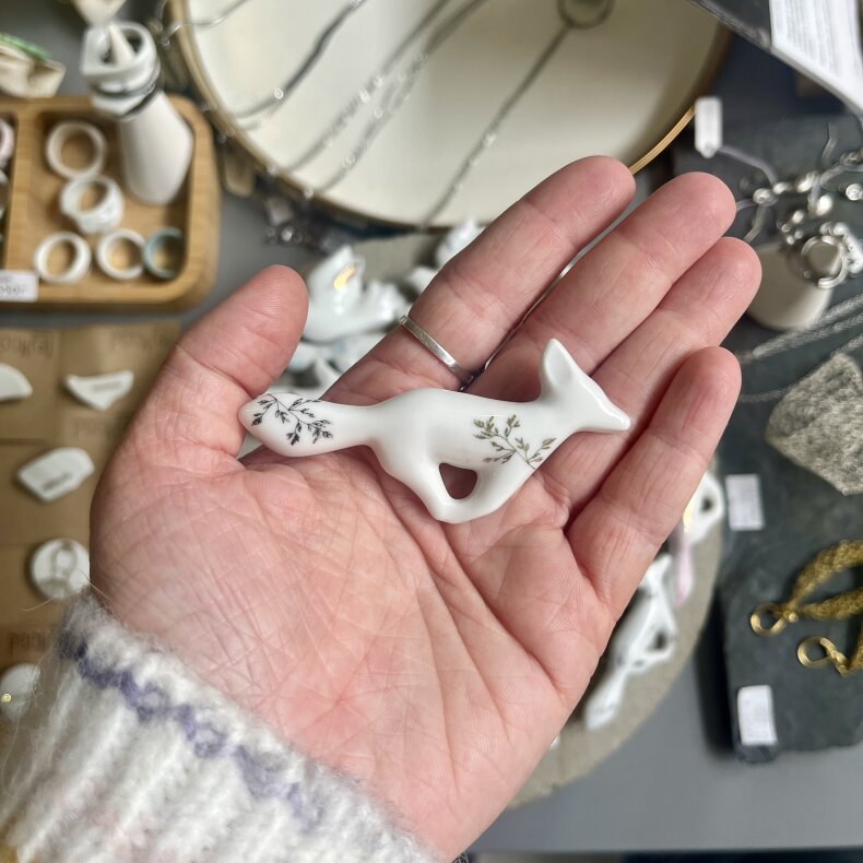 Porcelánová brož s autorskými potisky. Každý kus je originál.