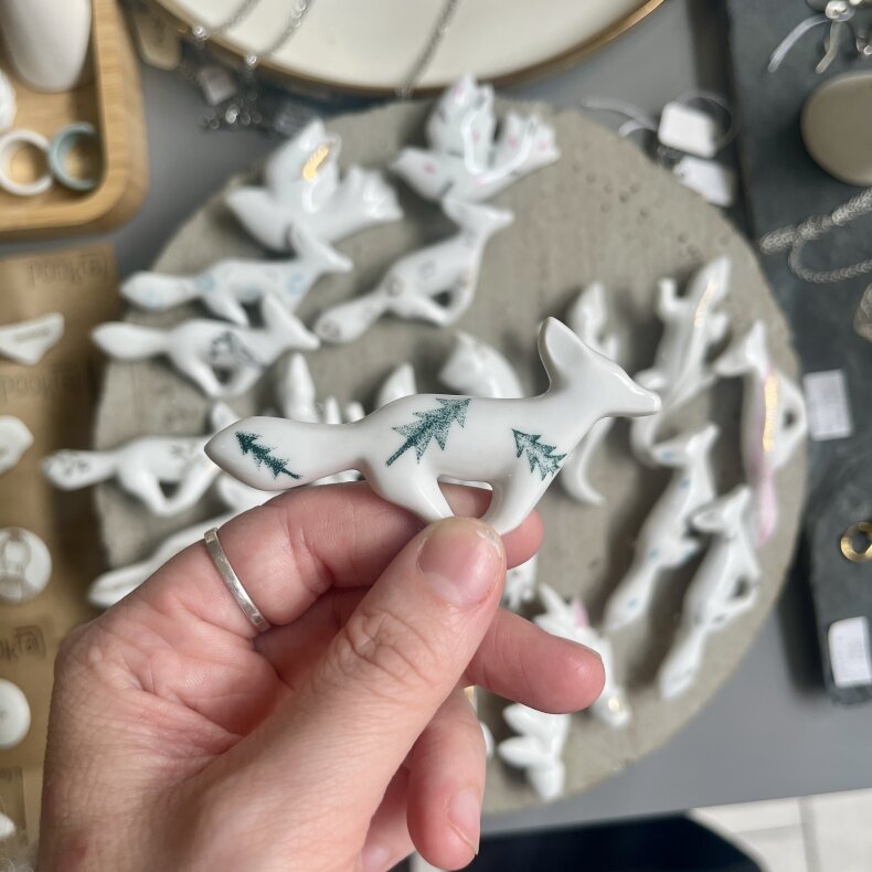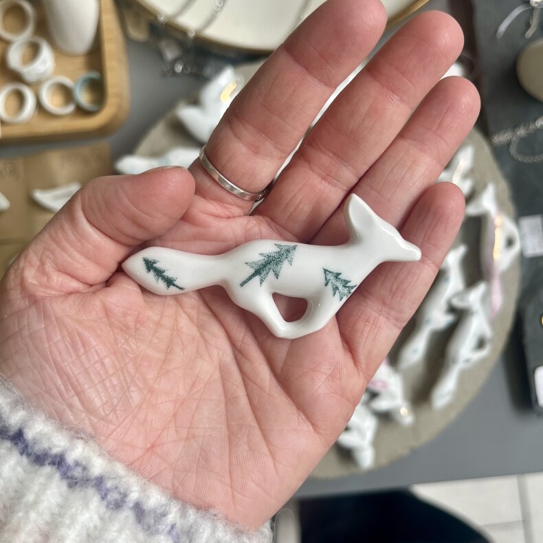 Porcelánová brož s autorskými potisky. Každý kus je originál.
