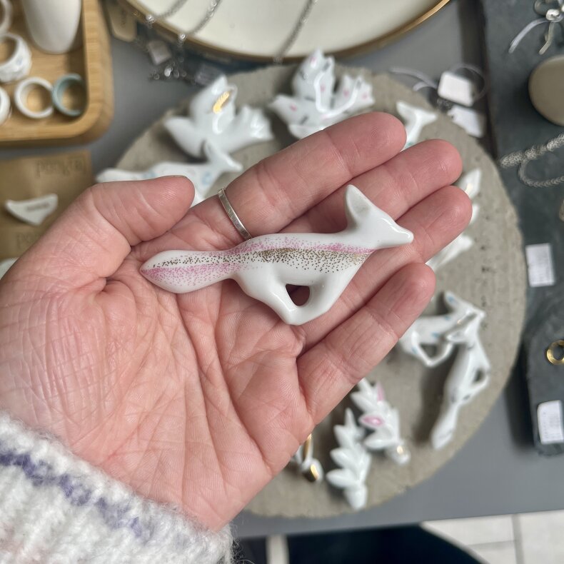 Porcelánová brož s autorskými potisky. Každý kus je originál.