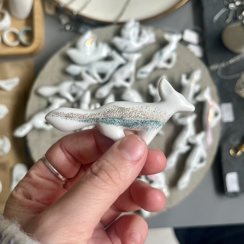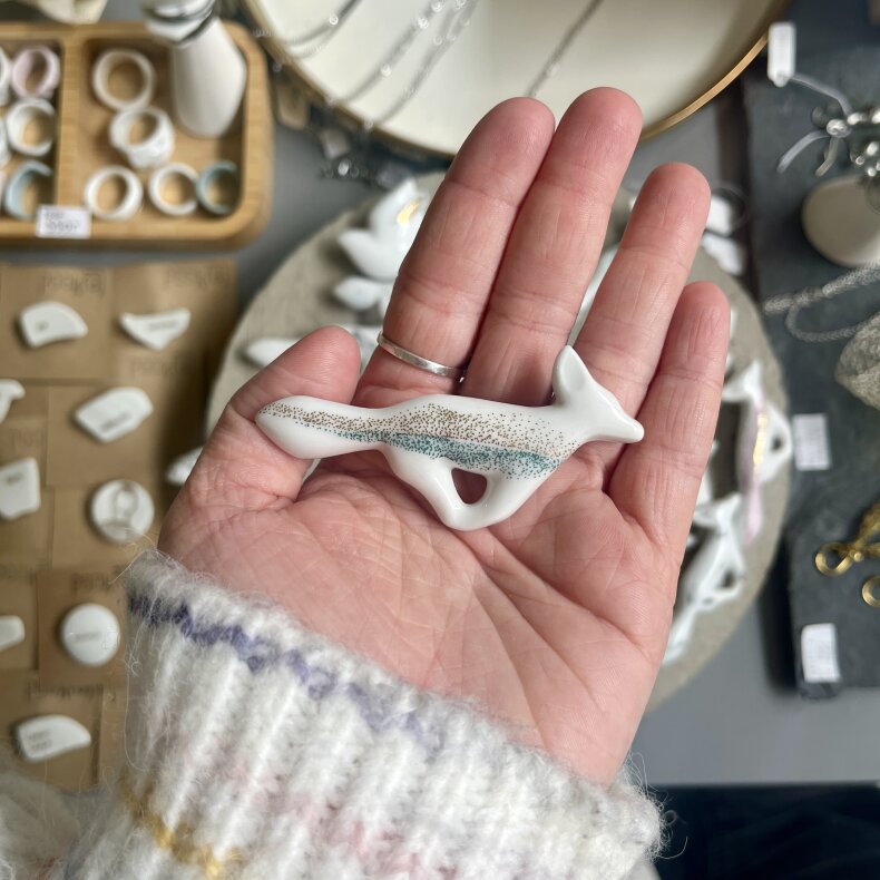 Porcelánová brož s autorskými potisky. Každý kus je originál.