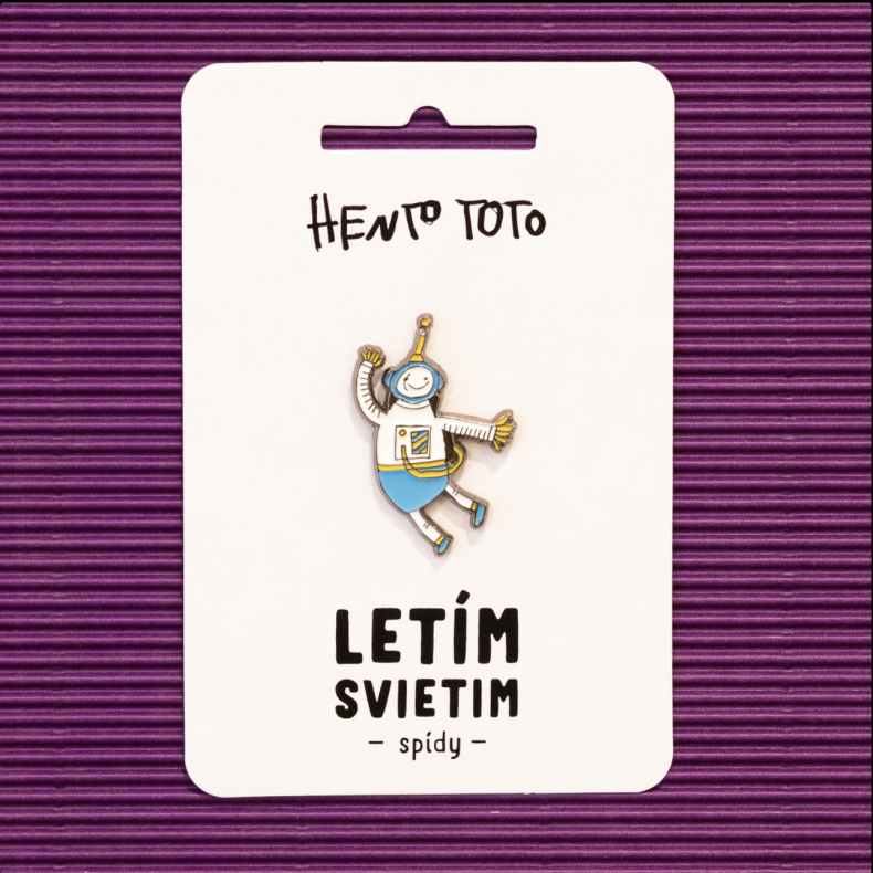 Odznáček s astronautem se jménem Spídy dle návrhu Lukyho.