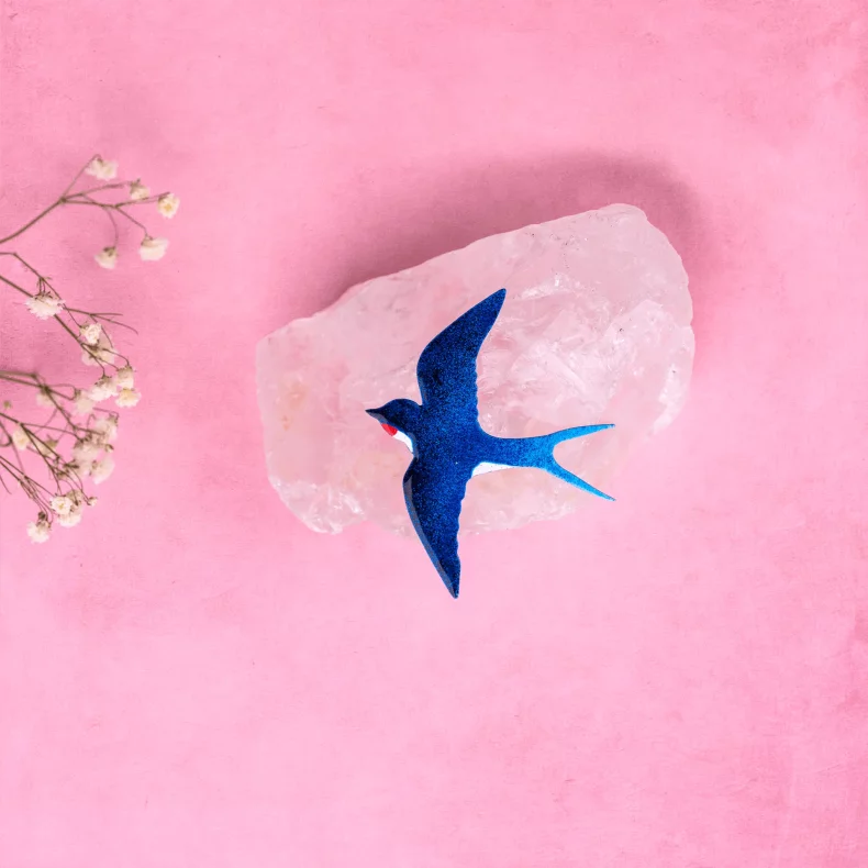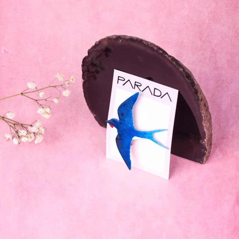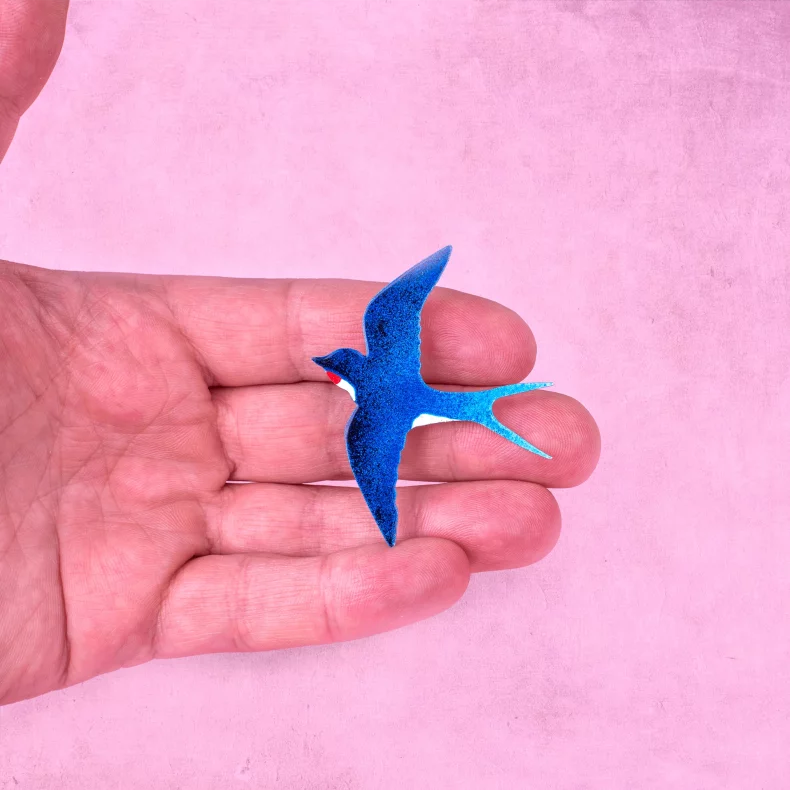 Brož je vyrobena z nerezové oceli, smaltovaná a ručně malována. Každý výrobek je tedy originálním uměleckým dílem a může se lehce lišit od toho zde na obrázku.
