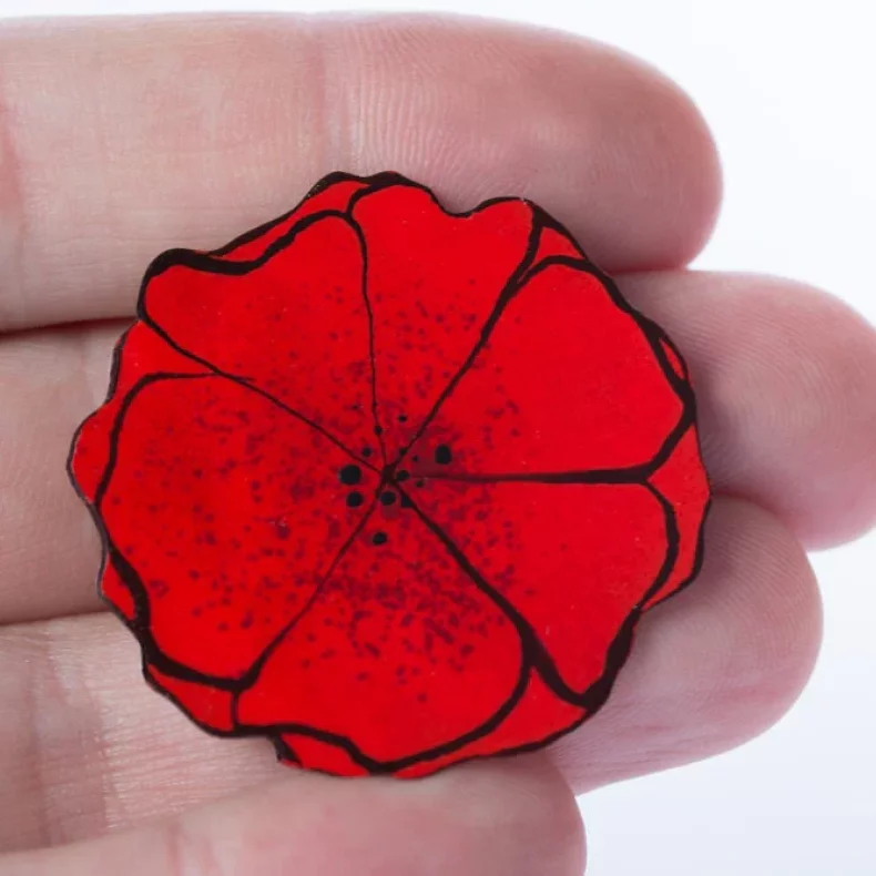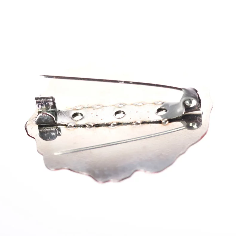 Brož je vyrobena z nerezové oceli, smaltovaná a ručně malována. Každý výrobek je tedy originálním uměleckým dílem a může se lehce lišit od toho zde na obrázku.