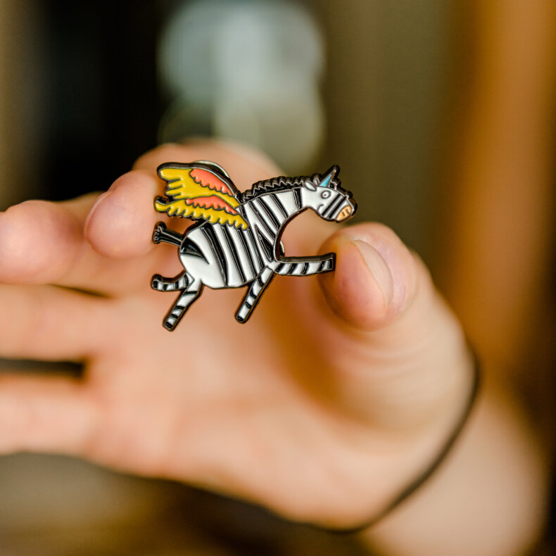 Díky pinovému zapínání brož dokonale přilne na látku. Můžete si ji připnout na kabát, bundu, sako i na batoh či tašku.