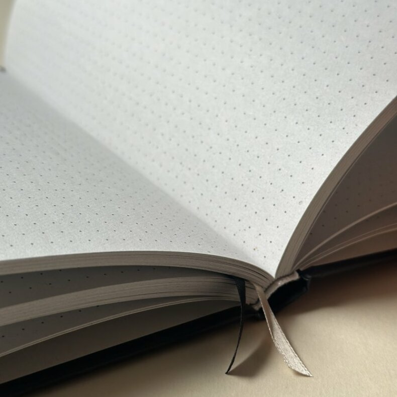 Bullet journal má na zadní straně kapsu pro vaše samolepky a další drobné předměty. S dvěma stuhami si navíc můžete založit stránku, která je pro vás aktuální a vyhnout se tak dlouhému listování.