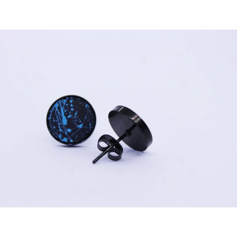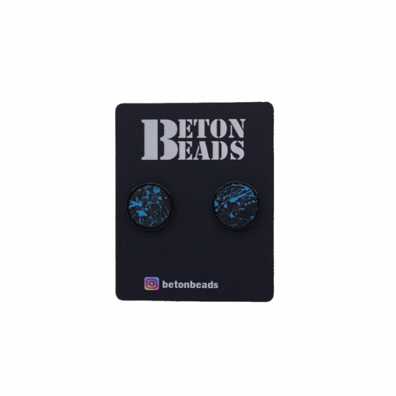 Náušnice s průměrem lůžka 12mm, v černém provedení a modrým designem, vyráběné ze speciálního šperkařského betonu a nerezového lůžka, jsou povrchově impregnované, a tudíž odolné proti vodě.