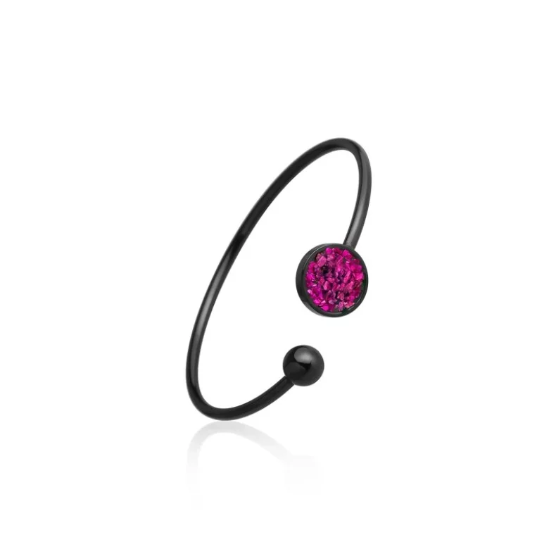 Fascinující tvorba z betonu ve šperku v podobě černého náramku s dekorem z barevného skla, který se díky otevřenému designu přizpůsobí každé ruce.