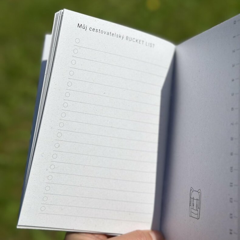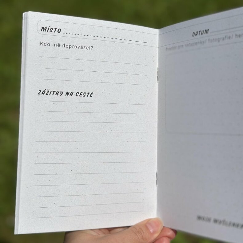 Nejvíce stran Deníku je věnováno vašim výletům. Na každé straně můžete vyplnit: místo, datum, s kým jste byli, zážitky na cestě, a prostor dostanou také vaše myšlenky a dojmy. Deník má dostatek prostoru pro fotografii, či herbář.