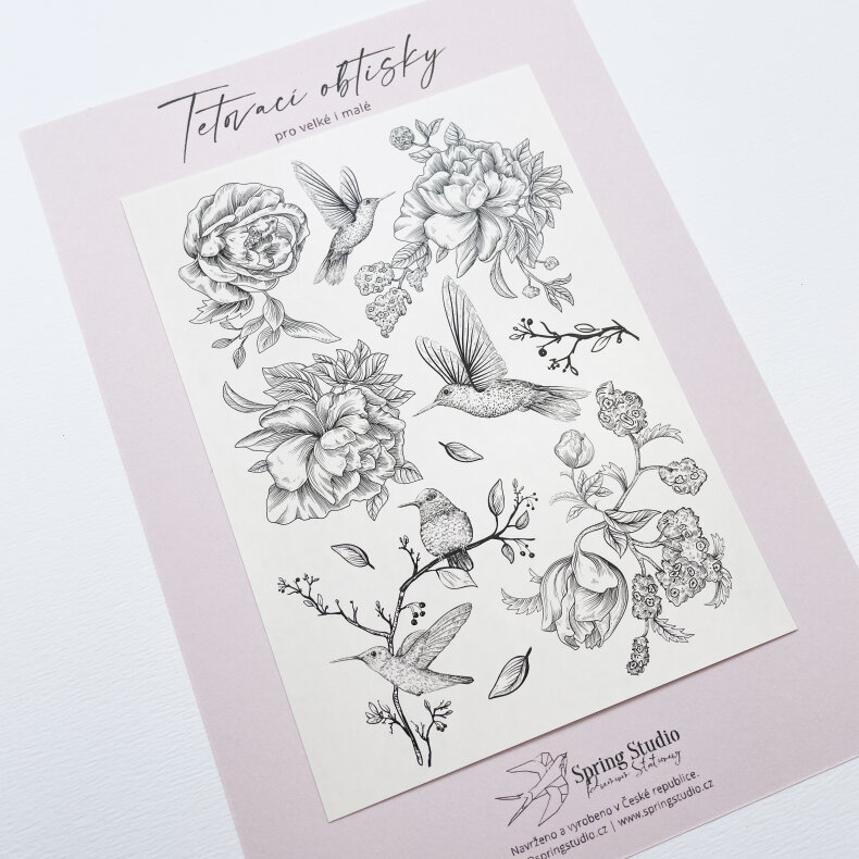 Dekorační obtisky na hladké, světlé materiály s motivem Kolibříků