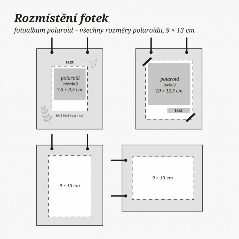 Album je svázáno kroužkovou vazbou a proti otevírání zajištěno gumičkou. Do alba si tak můžete přidávat libovolné stránky a ty co se třeba nepovedou naopak zase odebrat. Fotografie vlepíte jednoduše lepidlem, washi páskou nebo pomocí fotorožků.