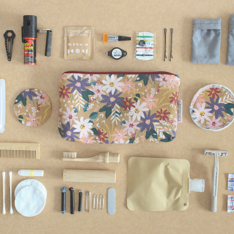 V ručně šité taštičce naleznete jemnou kombinaci vychytávek pro dívky a komponenty klasické krabičky poslední záchrany.