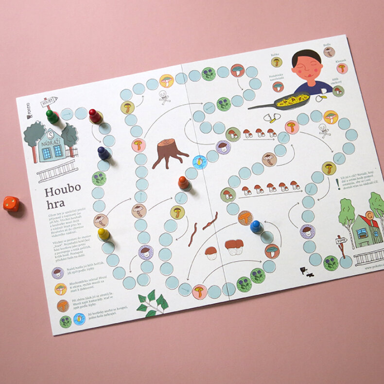 Houbohra je kooperativní desková hra, inspirovaná hrou Žebříky a hadi. Hráči a hráčky vyráží z nádraží do lesa na houby – většina jedlých hub je posouvá dopředu směrem k nádraží cíl, nejedlé houby a borůvkové hody je na cestě brzdí. Ten, kdo již je v cíli, pomáhá svými hody ostatním spoluhráčům.