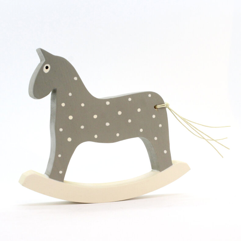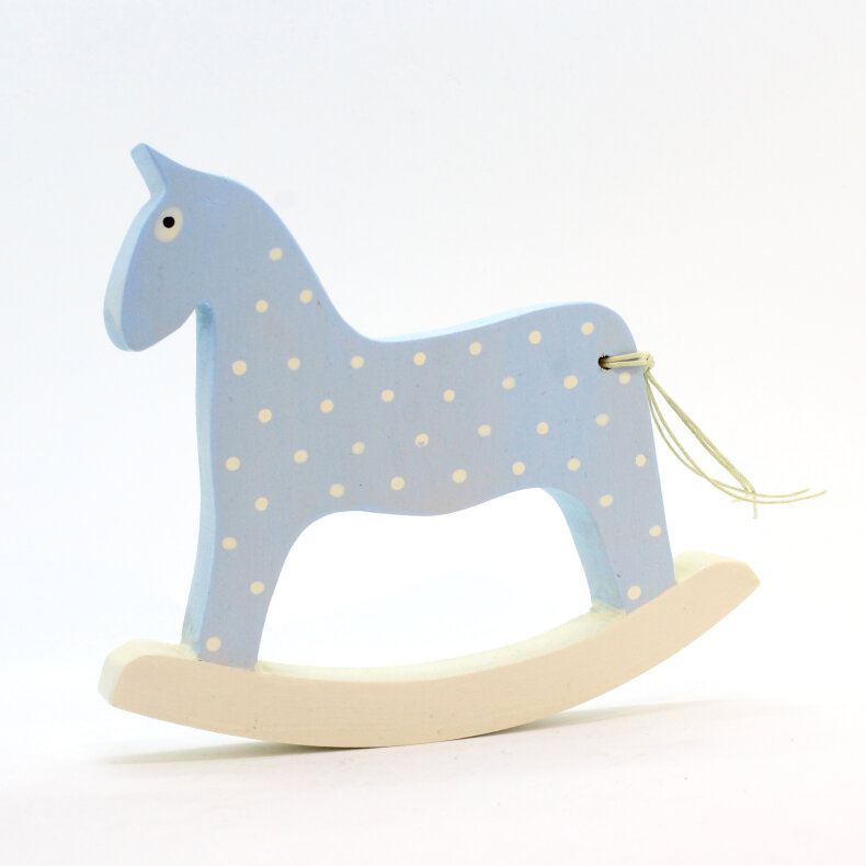 Koník je vyřezaný z lipového dřeva, ručně malovaný akrylovými barvami a voskem, zdravotně nezávadný.