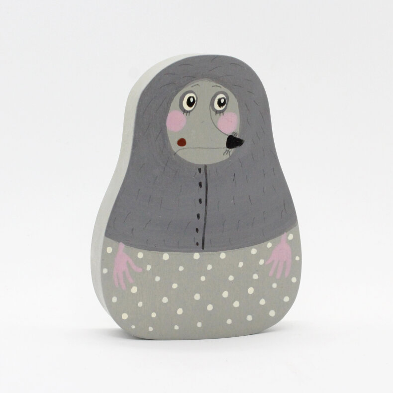 Figurka je jednostranně malovaná. Každý kousek je jedinečný ručně vyráběný originál. Od fotky, na kterou se díváte, se může lehce lišit barvou, tvarem a kresbou.
