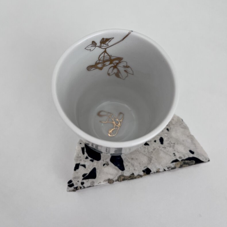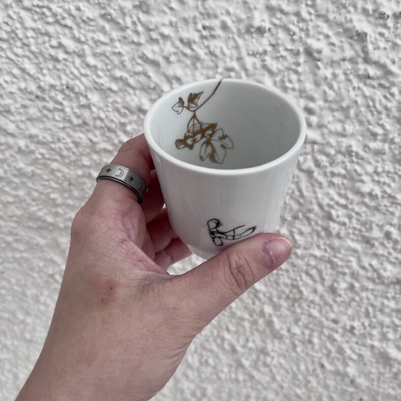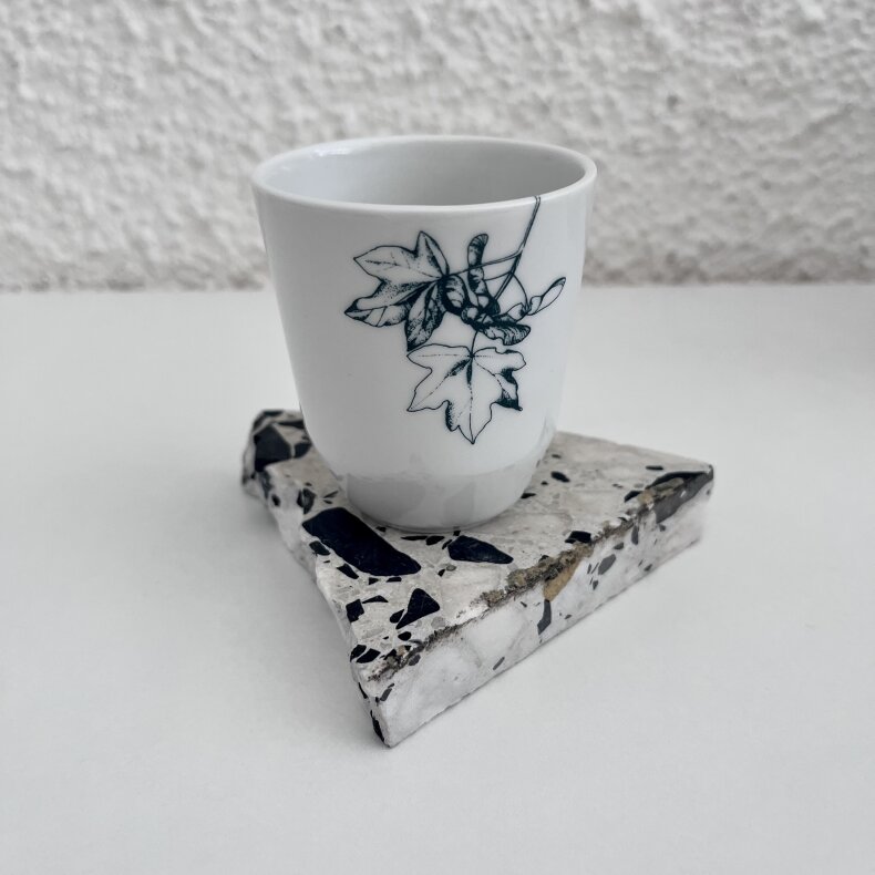 Malý porcelánový kelímek třeba na malou italskou kávu s dekorem javoru, ideální na sychravé podzimní dny.