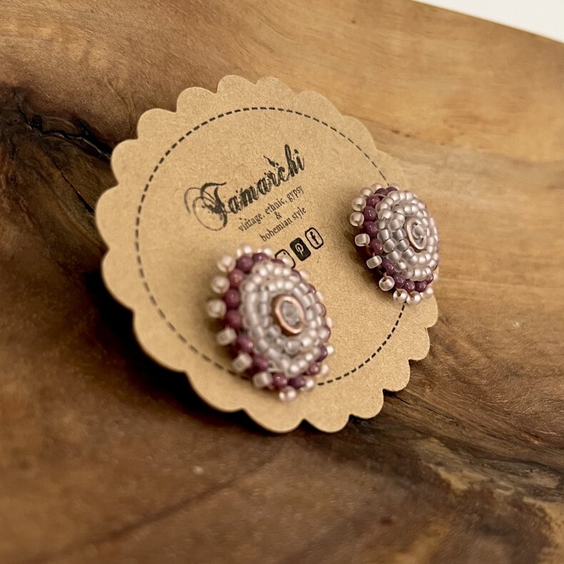 Krásné vyšívané náušnice - pecky ze skleněného lehoučkého korálu a rokajlu.