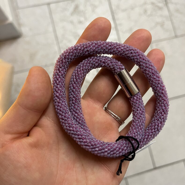 Tento náhrdelník byl vyroben s využitím korálků Preciosa. Náhrdelník lze nosit i jako náramek nebo přívěšek na tašku.