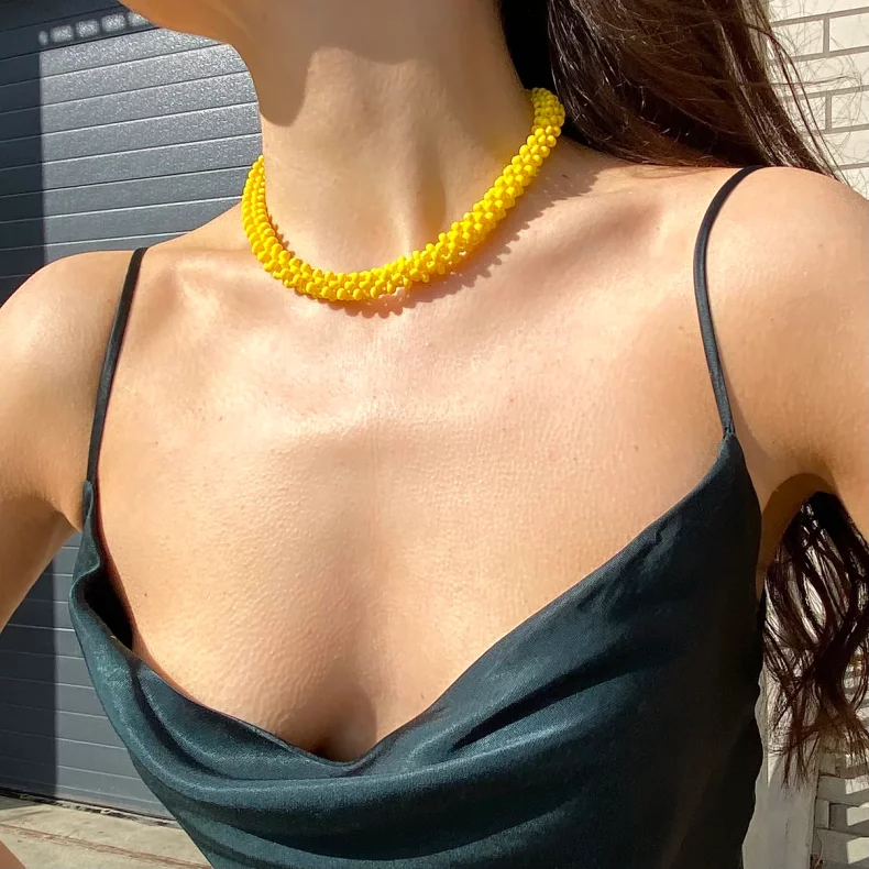 Thick Square Rope Alike Necklace žlutý_BEAK