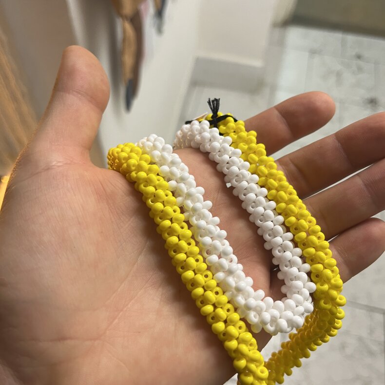 Rozměry: žlutý cca 46-47 cm, bílý 37 cm, tloušťka 1 cm