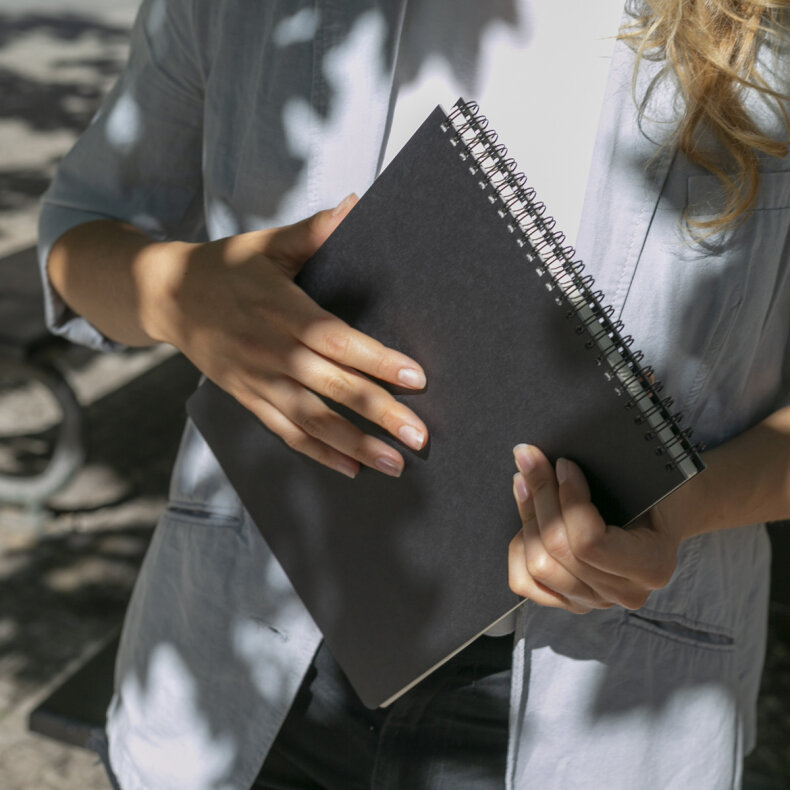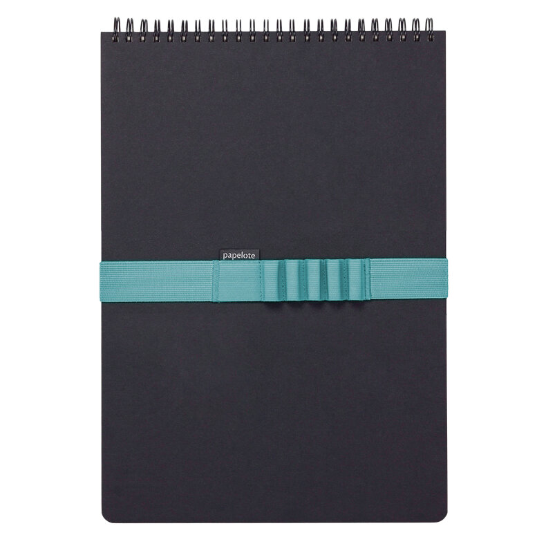 Blok na poznámky i náčrty. Pevné desky slouží jako podložka a umožňují tak psaní za jakékoliv situace. Barevná gumička udrží stránky pohromadě a pobere až pět tužek. Gumička na bloku je v různých barvách. Nechte se překvapit barevným výběrem.