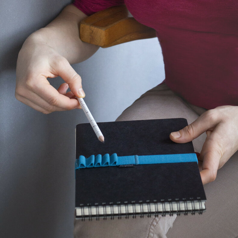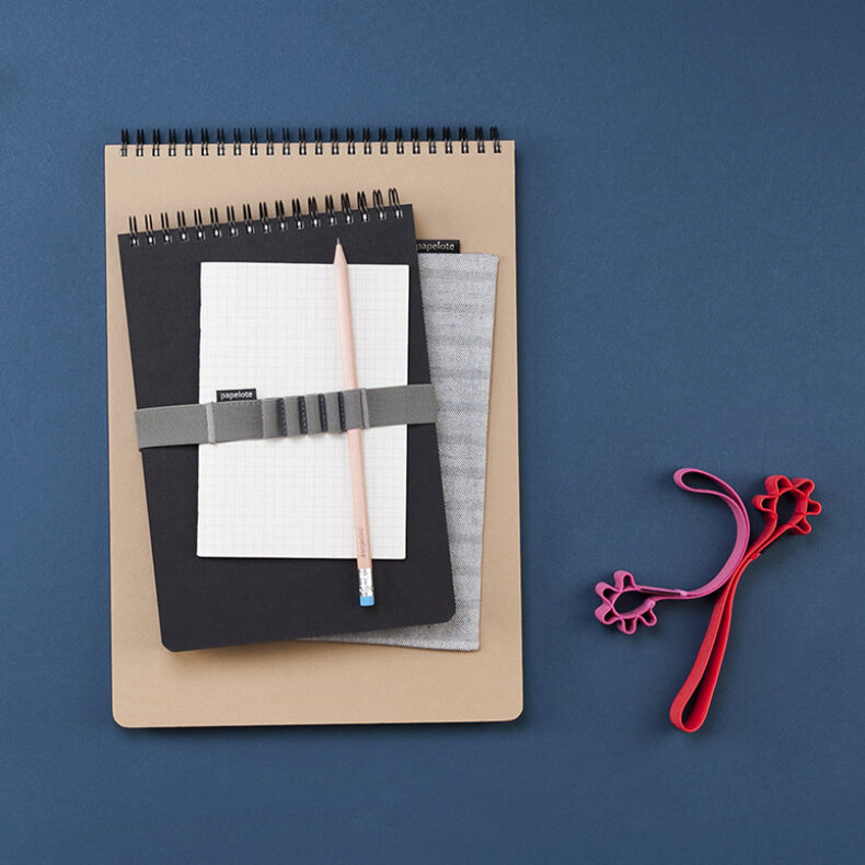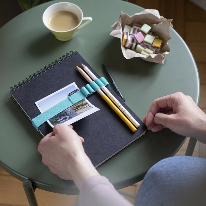 Blok na poznámky i náčrty. Pevné desky slouží jako podložka a umožňují tak psaní za jakékoliv situace. Barevná gumička udrží stránky pohromadě a pobere až pět tužek. Gumička na bloku je v různých barvách. Nechte se překvapit barevným výběrem.