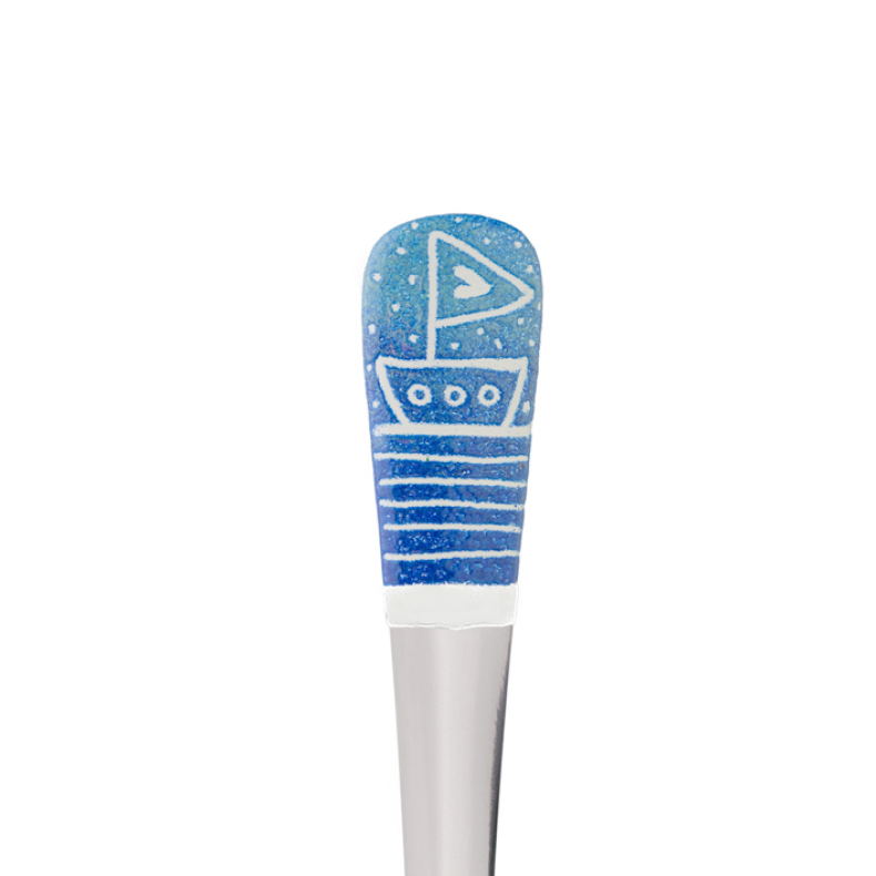malovaná lžička modrá - Jachta s plachtou