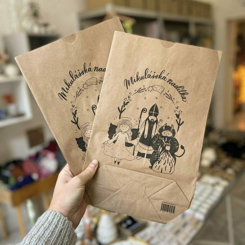 Motiv na sáčku vytvořila ilustrátorka Bár az Nikolajky. Najdet ena něm Anděla, Čerta a Mikuláše.