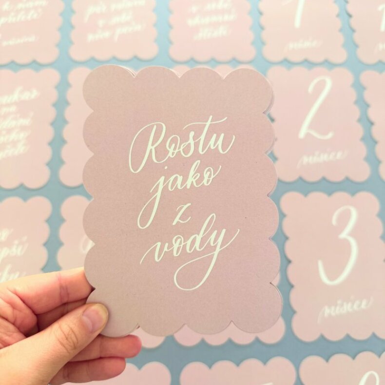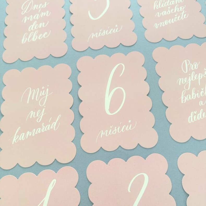 Sada milníkových kartiček pro těhotnou maminku a její miminko vám pomůže zaznamenat důležité milníky, které vás společně čekají. Ať už se jedná o zaznamenávání rostoucího bříška, oznámení rodině šťastnou novinu, tak o první koupání, první lásky a další důležité okamžiky. :)