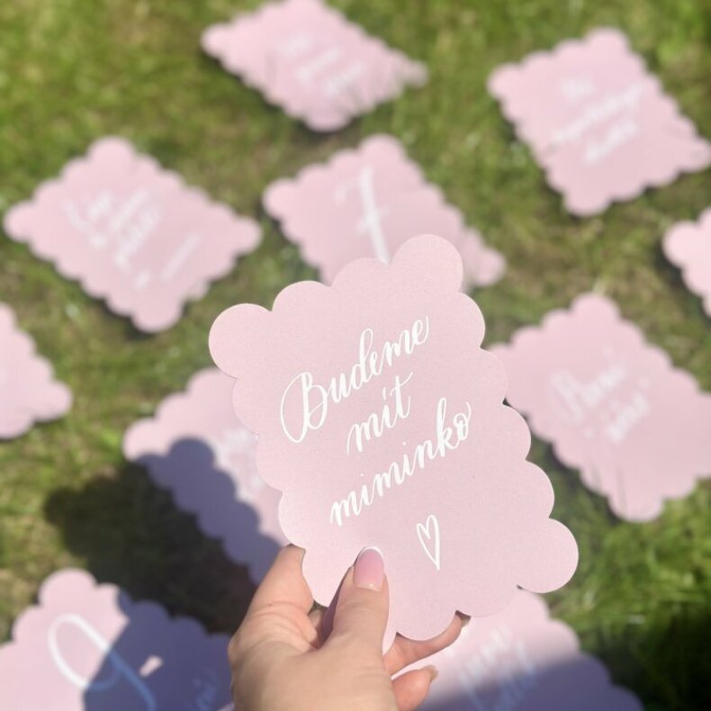 Milníkové kartičky krasopisně nadepsala česká výtvarnice Bára z Nikolajky.