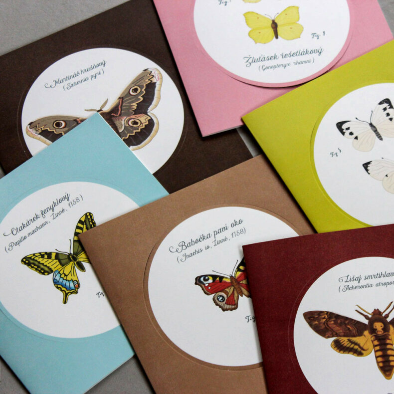 Balení obsahuje: brožura, 6 karet k dotvoření, 6 kruhových výseků s vyobrazením motýlů. ISBN: 978-80-907392-7-7