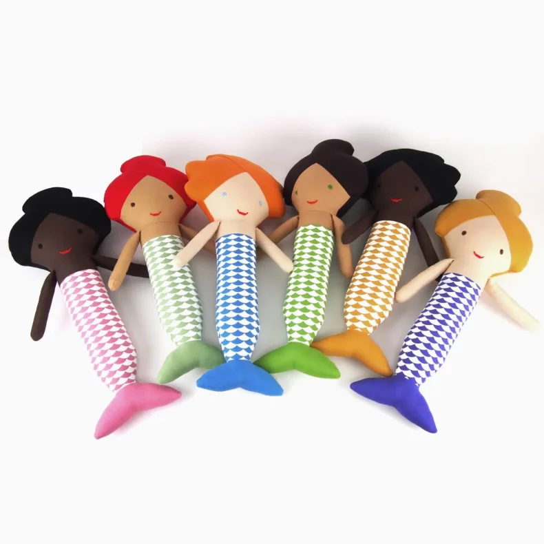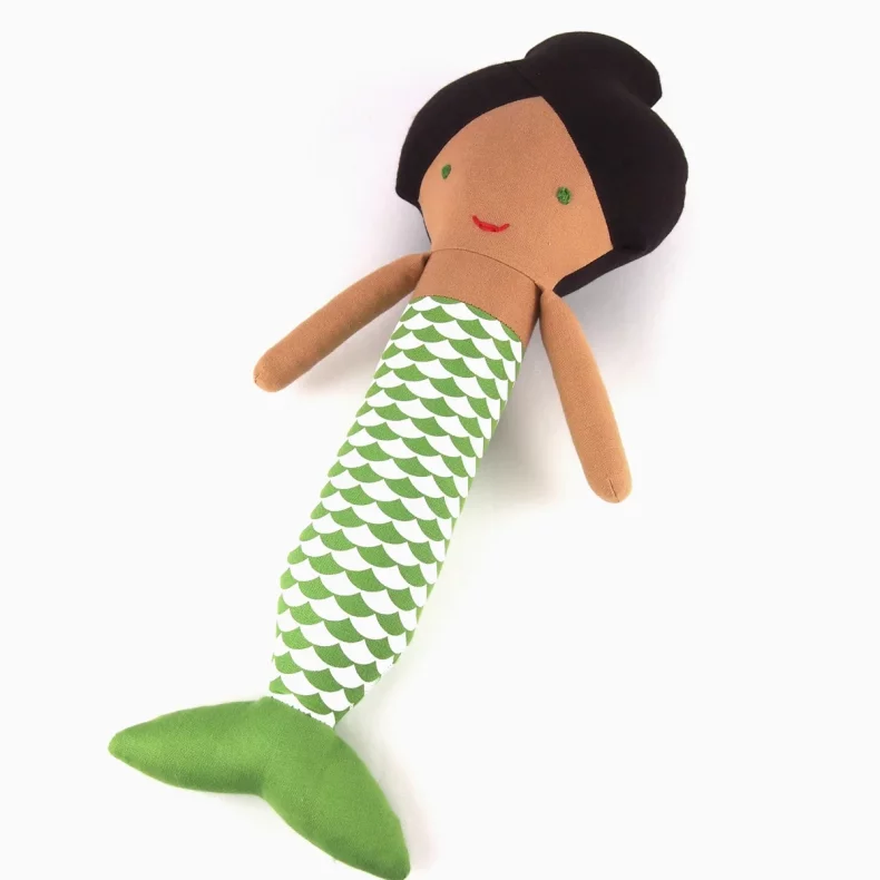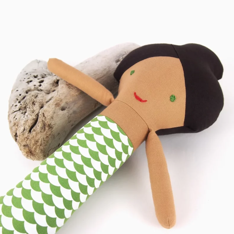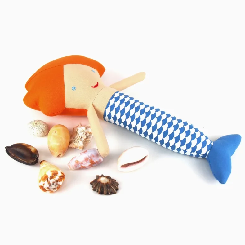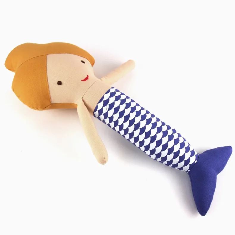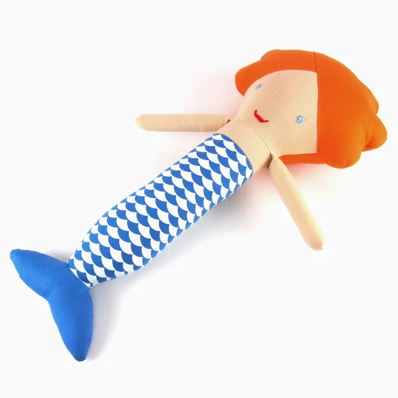 Mořská panna je ušitá ze 100% bavlny, má ručně vyšitý obličej a je vyplněná protialergickým polyesterovým vláknem.
