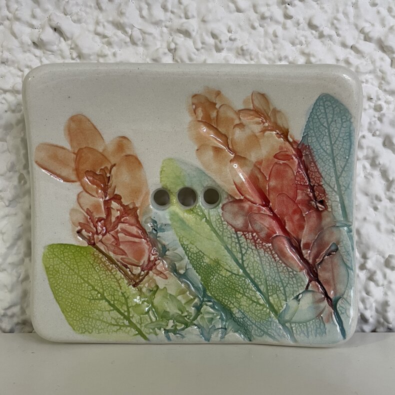 Mýdlenka pochází z keramické dílny na Šumavě, je ručně vyrobena z kvalitní italské hlíny, dvakrát vypalovaná v peci, ručně malovaná a ručně modelovaná a glazovaná. Výrobek je lehký a příjemný na užívání. Keramika je testovaná a nezávadná.