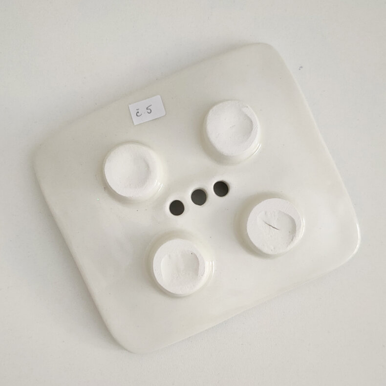 keramická mýdlenka na čtyřech nožičkách s dírkami pro odtékání pěny a vody