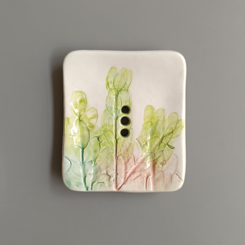 Mýdlenka pochází z keramické dílny na Šumavě, je ručně vyrobena z kvalitní italské hlíny, dvakrát vypalovaná v peci, ručně malovaná a ručně modelovaná a glazovaná. Výrobek je lehký a příjemný na užívání. Keramika je testovaná a nezávadná.