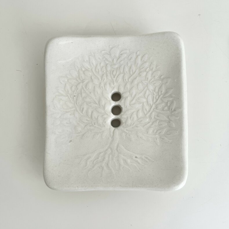 keramická mýdlenka na čtyřech nožičkách s dírkami pro odtékání pěny a vody