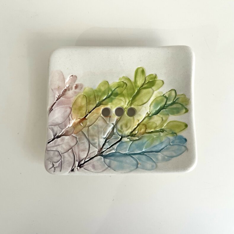 Mýdlenka pochází z keramické dílny na Šumavě, je ručně vyrobena z kvalitní italské hlíny, dvakrát vypalovaná v peci, ručně malovaná a ručně modelovaná a glazovaná. Výrobek je lehký a příjemný na užívání. Keramika je testovaná a nezávadná.