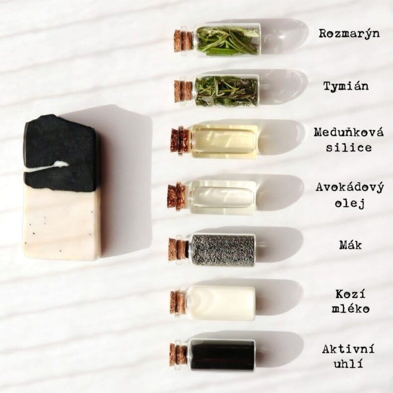 Přírodní ručně vyráběné černobílé mýdlo s aktivním uhlím, kozím mlékem a bambuckým máslem. Mýdlo je vhodné na celé tělo, zejména na problematickou pleť.