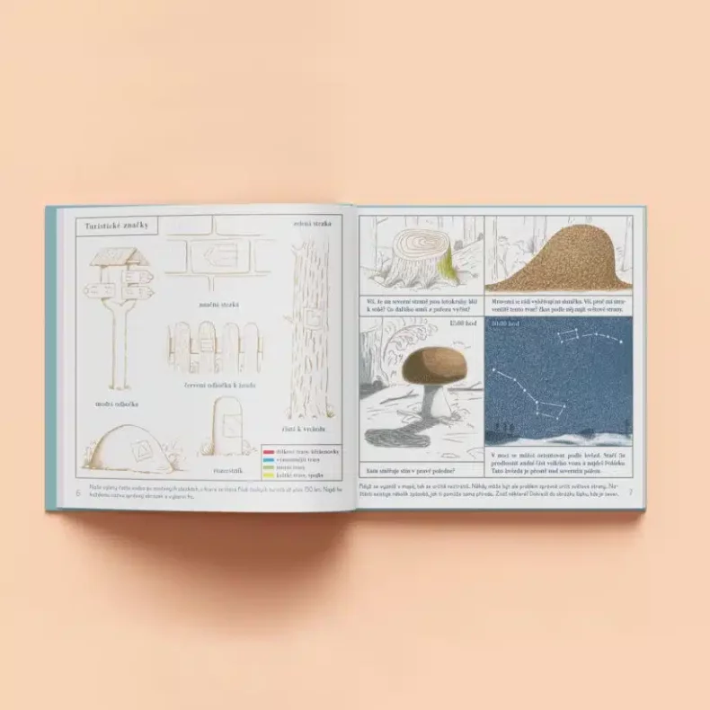 Tento sešit tě naučí, jak číst mapu a orientovat se v přírodě. postavíš z něj modely různých obytných aut a stanů.