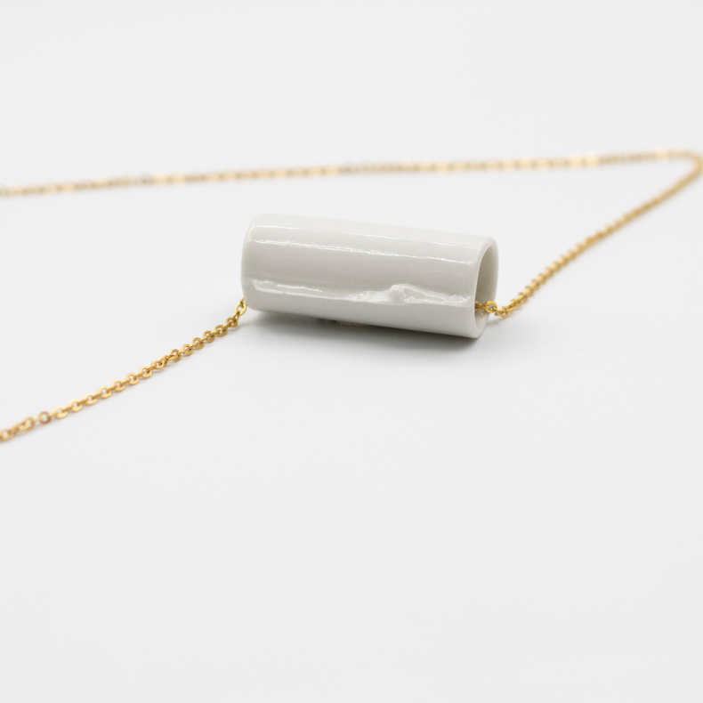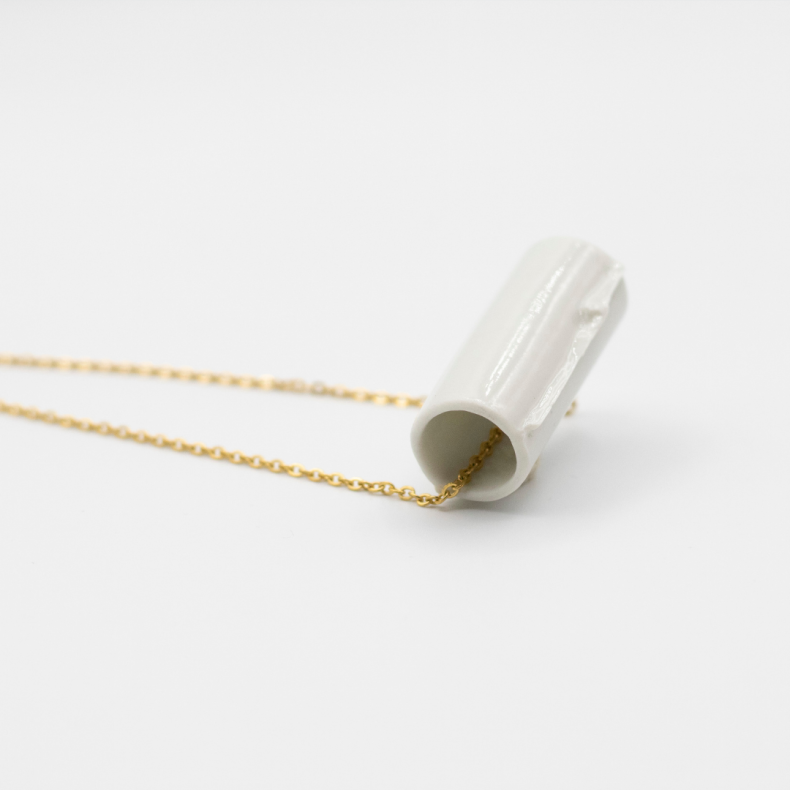 Bílý porcelánový šperk zdobený zlatým motivem na řetízku ze zlaté chirurgické oceli