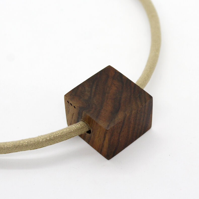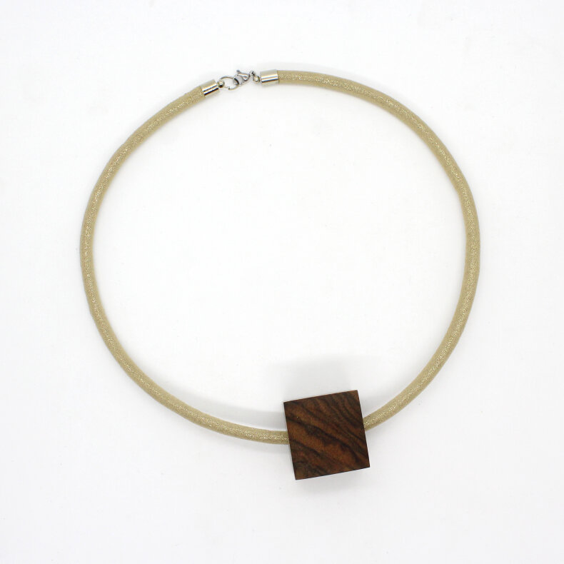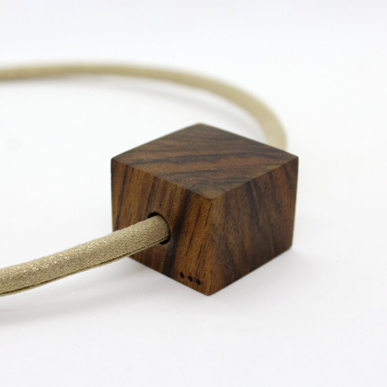 Dřevěné šperky nazývají jejich tvůrci jednoduše DŘEVÁKY. Vyráběny jsou s láskou a velkou péčí v malé dílně na Vysočině. Každý kousek je jedinečný svým tvarem, zbarvením a texturou dřeva. Tento náhrdelník je vyroben z ořechového dřeva a zavěšen na textilní šňůře průměru cca 15 cm.