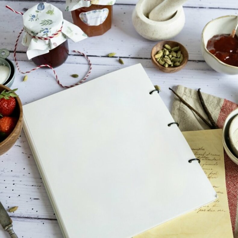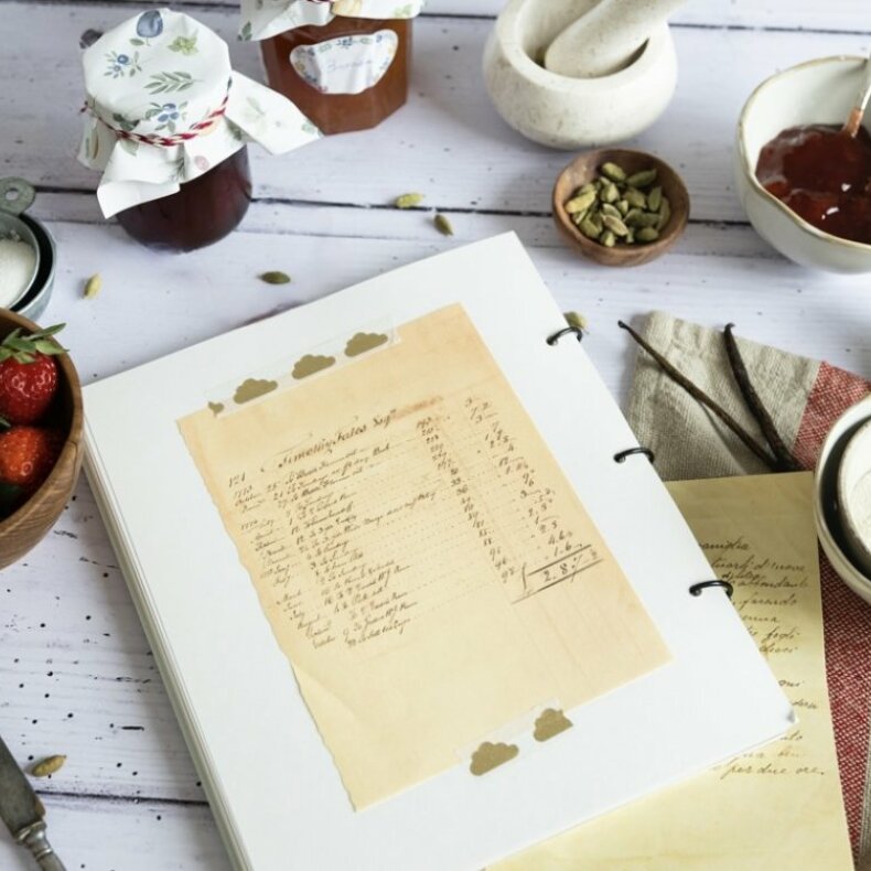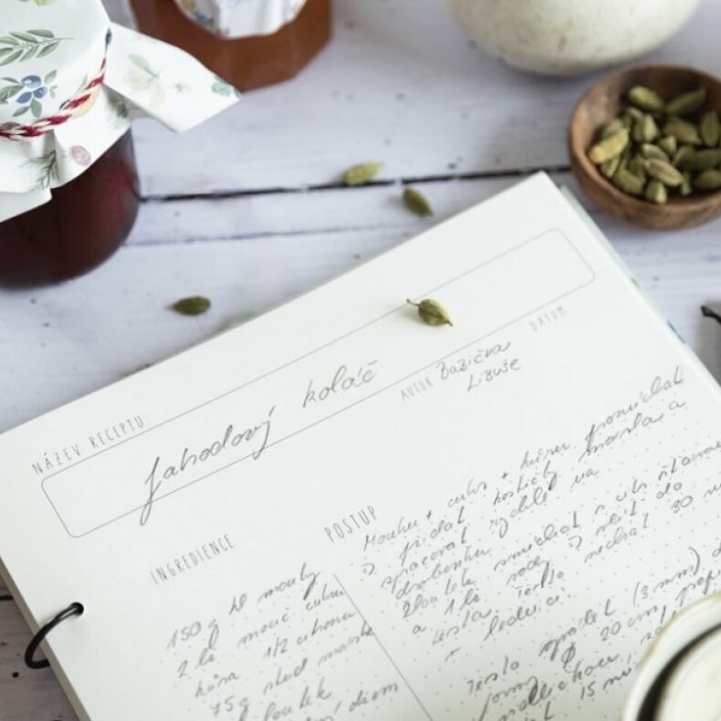 Máme pro vás naší domácí kuchařku, do které můžete zaznamenávat vaše rodinné recepty a předávat je dál svým dětem či vnoučatům. Své recepty můžete textově zaznamenávat, nalepit si s washi páskou na stránku fotku, a celý vytváření receptu si užít stejně jako vaření.