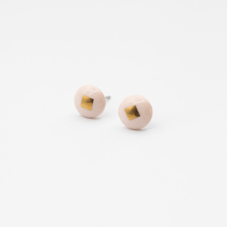 jemné porcelánové puzetové náušnice s originální zlatou kresbou. Minimalistický šperk v růžové