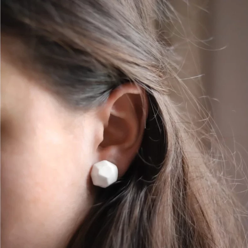 porcelánové náušnice ve tvaru geometrického mnohostěnu jsou originálním a minimalistickým doplňkěm pro každou příležitost
