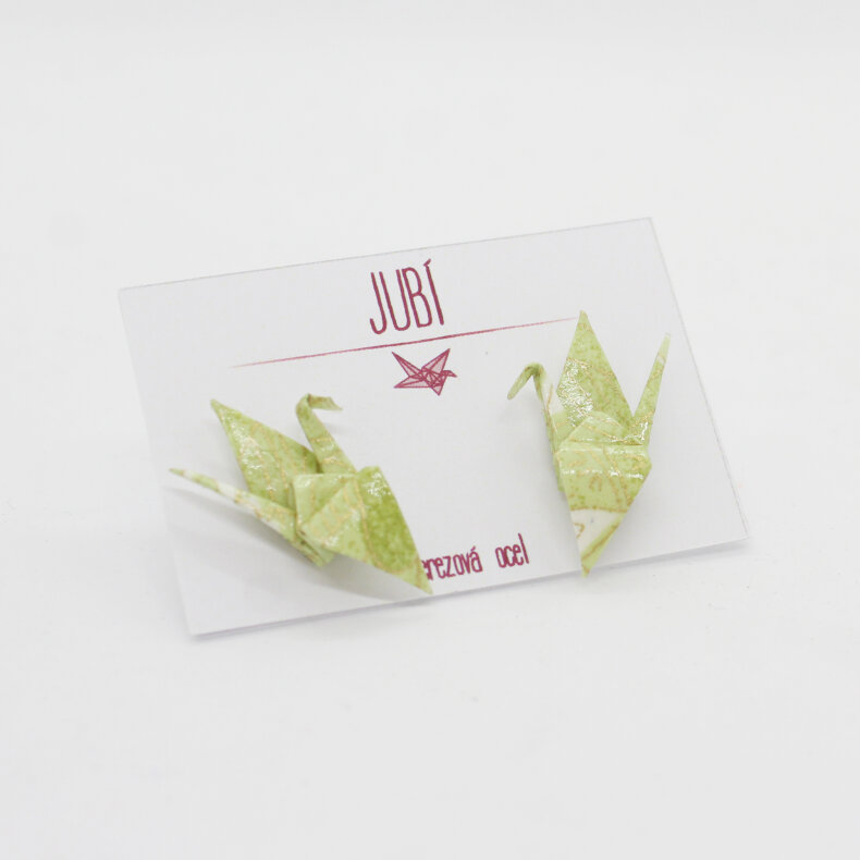 Náušnice jsou ručně složeny z kvalitního dovozového washi papíru, který byl vyroben v samotné kolébce origami v Japonsku. Puzety jsou slepeny kvalitním epoxidovým lepidlem a zalakovány lesklým lakem tak, aby odolaly větru, dešti a vodě. Kovové komponenty jsou z nerezové oceli. Zarážky náušnic jsou silikonové.